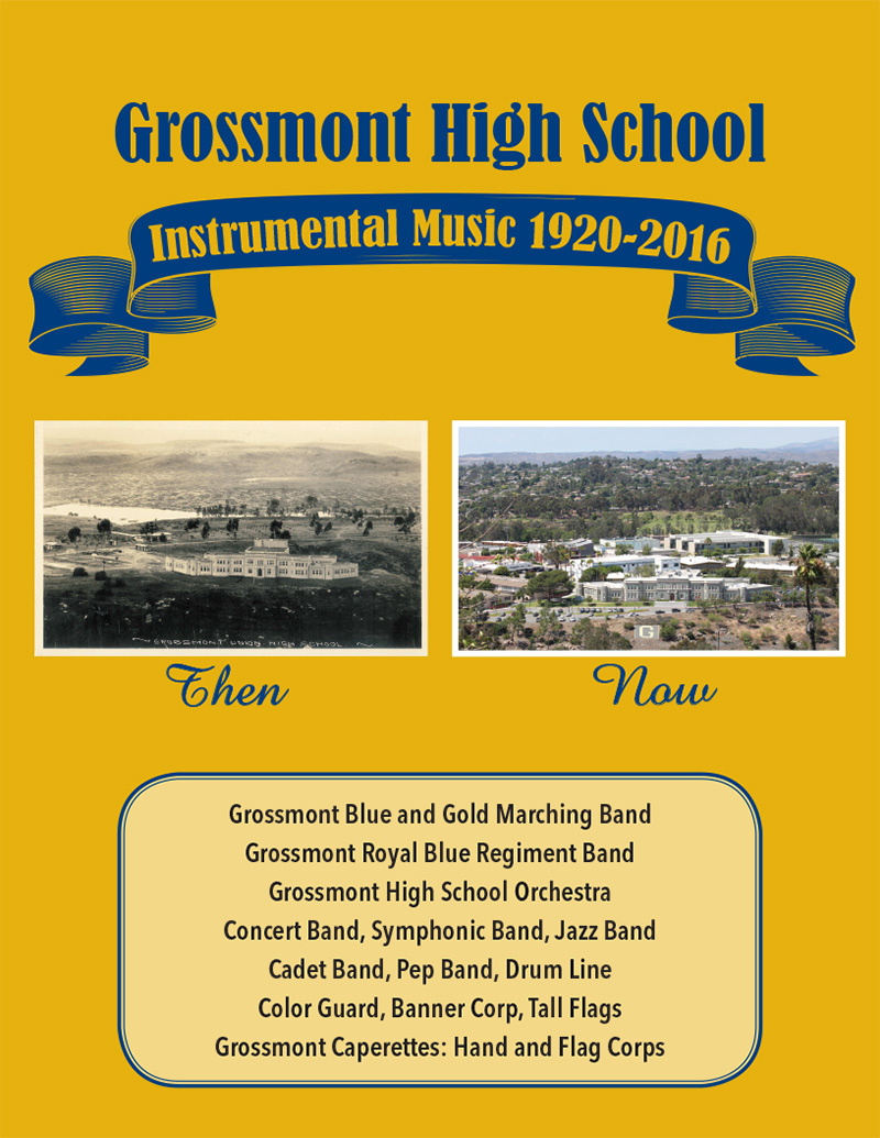 PURCHASE YOUR COPY OF THE 260-PAGE BLACK AND WHITE AND COLOR BOOK DOCUMENTING THE INCREDIBLE 95-YEAR HISTORY (1920- 2016) OF GROSSMONT HIGH SCHOOL’S INSTRUMENTAL MUSIC PROGRAM: