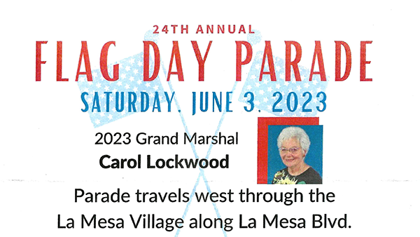 Carol has been selected as the Grand Marshall of the 24th Annual Flag Day Parade in La Mesa.