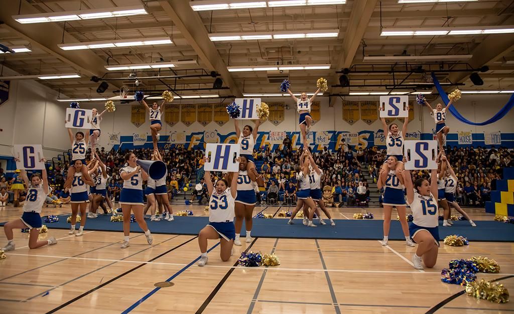 During the school day, the annual pep rally was another enthusiastic event that delighted the students. It included the introduction of the 2023 inaugural Girls Flag Football team (GUHSD’s only Flag Football team), followed by student and staff competitions, and performances by the cheer squad. Again, the GHS staff’s willingness to “look silly” continued to build school spirit by their participation in two contests.