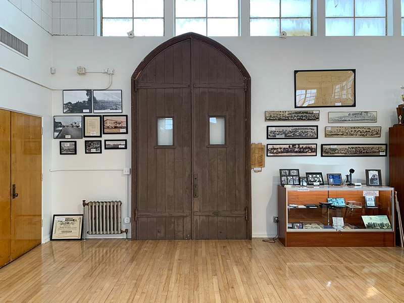 Now, on display are the iconic original 1922 Castle doors, which we have stored since 2012 along with other artifacts of the original school. Thanks to GUHSD carpenter Tony Patton, they are on the wall of the museum between the “Before GHS” and the “1920s” photographs.