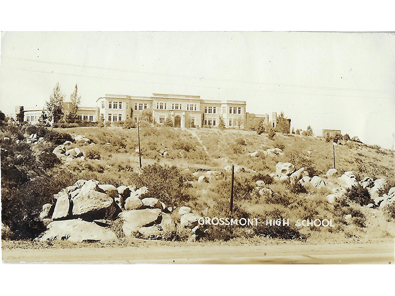An iconic Grossmont symbol appeared in 1931, as documented by the April 28, 1931 Foothill Echoes, “Hi-Y Places Big G on Northern Slope.” “The honor for the erection of the clear-cut symbol of Grossmont spirit, which rests on the slope directly back of the lake in the form of a giant G, goes to the local Hi-Y boys….Work began by clearing all plant growth, the outline was then filled in with rocks and lastly whitewashed. The letter adds to the appearance of the school; makes onlookers think that Grossmont is awake. Then, too, the school has the honor of being the only high school in the county with such an appropriate symbol.” Since then, there has been a G representing Foothiller pride on a nearby hill, on the hill in front of the original school, and on Cowles Mt.
