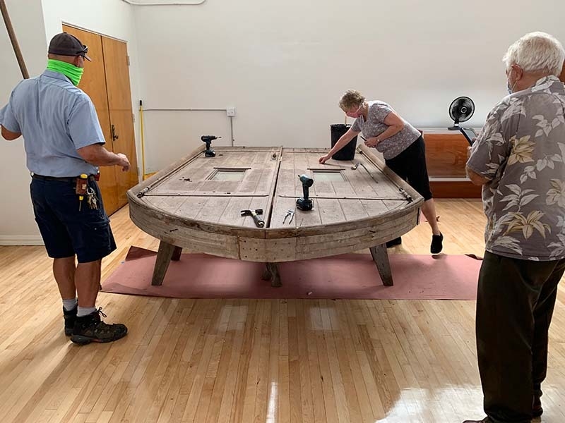 district carpenter tony pattonThere were so many district maintenance employees who worked to create the new museum.  Tony Patton, district carpenter, has been amazing.  He hung the iconic 1922 double doors for us, with help from Rory Gooden and Carl Cable. Tony has hung all of the photos and other memorabilia on the walls and recently installed the French doors from the lobby of the “Castle” in the Spirit Hallway.  Next up for Tony is installing 1960s and 1970s surfboards, donated by Tom Bloomer, Class of 1967.  Whatever we ask, Tony finds a way to make it happen.