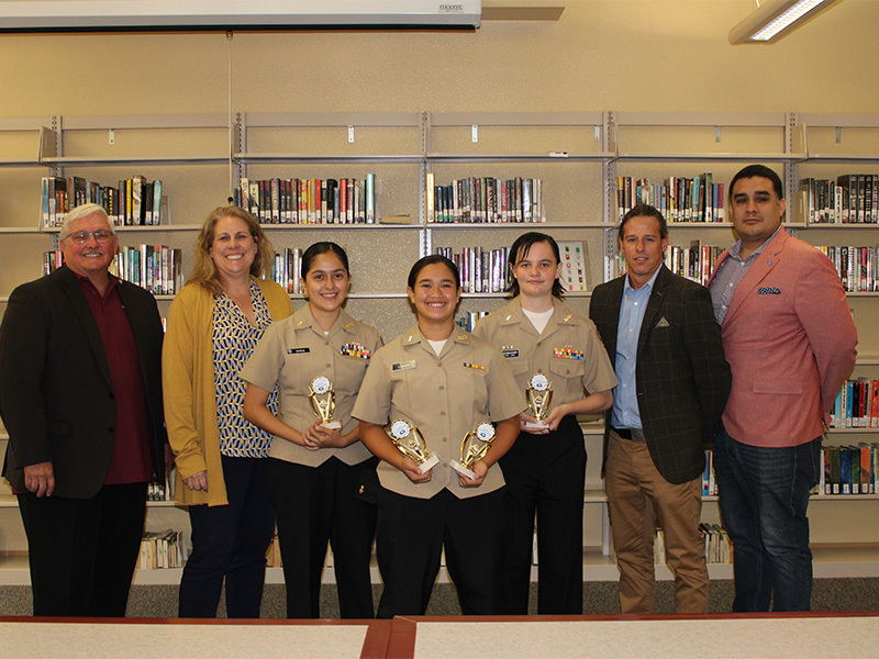 In October, NJROTC held its GHS Sound Off Competition with competitors from nine other schools. Foothiller Cadet Seaman Apprentice and freshman Malia Lebhar won first place as well as the Most Dynamic Speaker Award. The other winners were from Paloma Valley and Mar Vista High Schools. The judges were from the local San Diego Toastmasters 7 club with GHS Assistant Principal Dr. Christina Wilde in attendance.