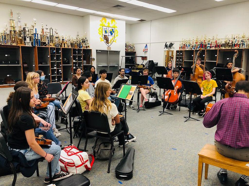 Karen Childress-Evans, GHS Artistic Director of Orchestras, shares that “The Grossmont College String Quintet visited our advanced orchestra class April 20, 2023, during period 6, thanks to a generous grant from Friends of East County Arts.
