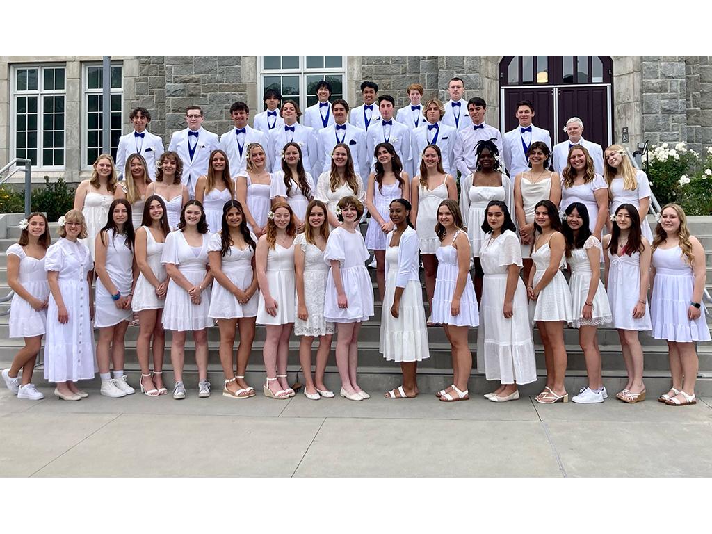 Since 1936, the graduating seniors have been led into the ceremony by students carrying the Daisy Chain, an 87-year tradition, created from the 1920s historic ivy still growing on campus and white daisies. Guided by Daisy Chain advisors Matt Flisher and Kristen LoPrell, the teaching staff selected 45 outstanding juniors on the basis of their school activities, scholarship, and citizenship; being selected is the highest honor awarded juniors.