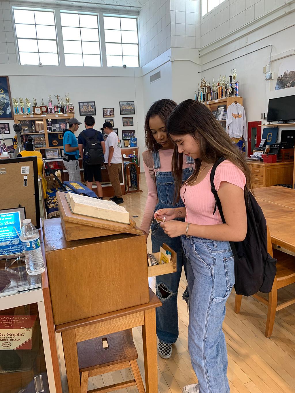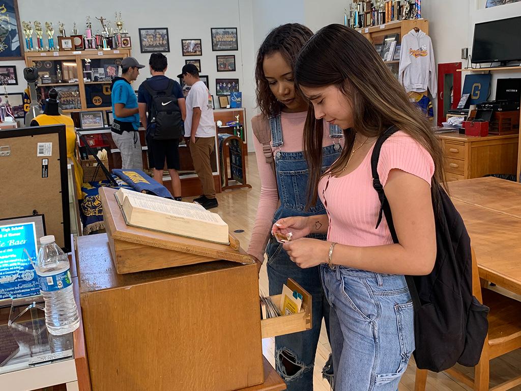 Unbelievably, we have furniture from the original school. Two of our three oak teachers work tables have numbered leather tags, confirming their use in the early days of GHS. The three tables provide a place for students and visitors to experience and relive Foothiller memories as they look through the yearbooks, the student newspapers, and more.