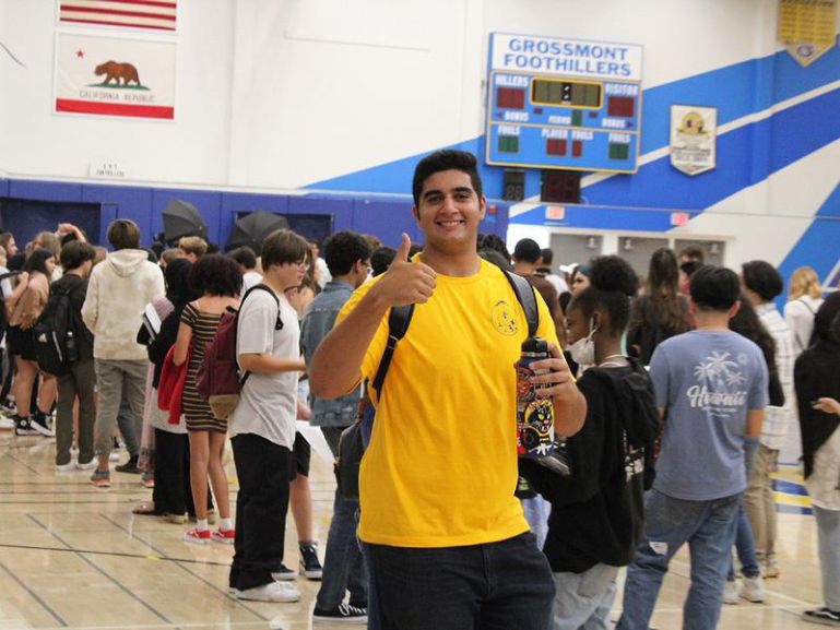 Mercedes Joyce and Melissa Velarde sing Vivir Me Vida to Principal Dan Barnes